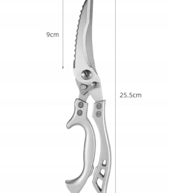 Dessa kökssaxar är tillverkade av högkvalitativt rostfritt stål, vilket garanterar korrosionsbeständighet och långvarig hållbarhet. Bladen är skarpa och effektivavilket möjliggör exakt klippning av olika typerkött, fågel och fisk. Denna produkts solida konstruktion gör den till en pålitlig kökskompanjon.