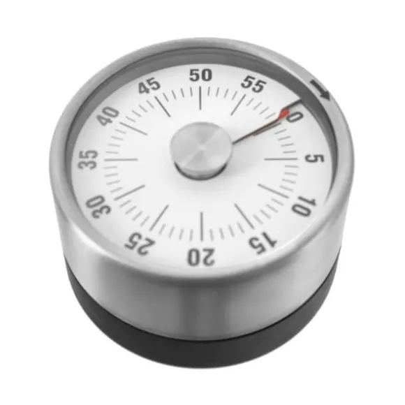 ENKEL ATT ANVÄNDA – Timern kräver inga batterier. Den har en tydlig minutmarkör med 5-minutersintervaller (från 0 till 60 minuter). Vrid timern till slutet av mätsektionen och återgå sedan till önskad tid. Urtavlan är tydligt synlig, även på avstånd.