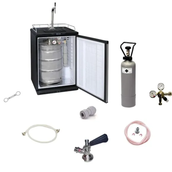 Öltapp, Öldispenser, Ölmaskin, Ölautomat, Ölkylare, Kegerator, Mobil öl bar, Mobile bar, Fatkyl – Komplett set | 50L ölutmatningssystem med utmatningspelare och kompensatorkran Alltid färsk öl med Kegerator Med Kegerator får du alltid perfekt kyld öl, precis som på krogen. Detta är den ultimata ölkylskåpet som gör att du kan tappa färsk öl hemma. Ingen slöseri med öl längre Med Kegerator slipper du slösa bort halvfulla flaskor eller burkar av öl. Du kan nu lätt och enkelt tappa exakt så mycket öl som du vill, och resten av ölet förblir fräscht i fatet. Enkel att använda och underhålla Kegerator är mycket enkel att använda och underhålla. Med den digitala temperaturkontrollen kan du enkelt ställa in öltemperaturen för att passa dina preferenser, och den automatiska avfrostningsprocessen gör rengöringen enkel. Perfekt för hemmabruk eller till festen Kegerator är en fantastisk följeslagare för alla ölentusiaster, oavsett om det är för hemmabruk eller till festen. Dess kompakta storlek gör att den passar perfekt i trånga utrymmen, och med hjulen kan du enkelt flytta den runt. Högkvalitativa och hållbara material Kegerator är tillverkad av högkvalitativa och hållbara material, vilket gör det till en investering som du kan lita på i många år framöver. Få den bästa smaken från ditt öl Med det eleganta utmatningssystemet och kompensatorkranen får du alltid den bästa smaken från ditt öl. Detta är den perfekta lösningen för att njuta av en väl kyld öl med ett perfekt skum. Energieffektiv Kegerator är energieffektiv och har en årlig energiförbrukning på endast 329 kWh/år, vilket sparar dig pengar i längden. Lätt att rengöra Kegerator är mycket lätt att rengöra, vilket gör att du alltid kan ha en ren ölhantering hemma. Perfekt för olika ölsorter Kegerator är designad för att fungera med olika typer av öl, vilket gör den mångsidig och användbar för alla dina ölbehov. Inkluderar allt du behöver Kegerator levereras som en komplett uppsättning som inkluderar allt du behöver för att börja tappa öl hemma. Detta gör det till en utmärkt gåva till någon som älskar öl. Beställ nu för att alltid njuta av väl kyld och färsk öl Beställ din Kegerator nu från vår butik och njut av den bästa ölen hemma, precis som på krogen. Missa inte chansen att alltid ha väl kyld och färsk öl till hands.