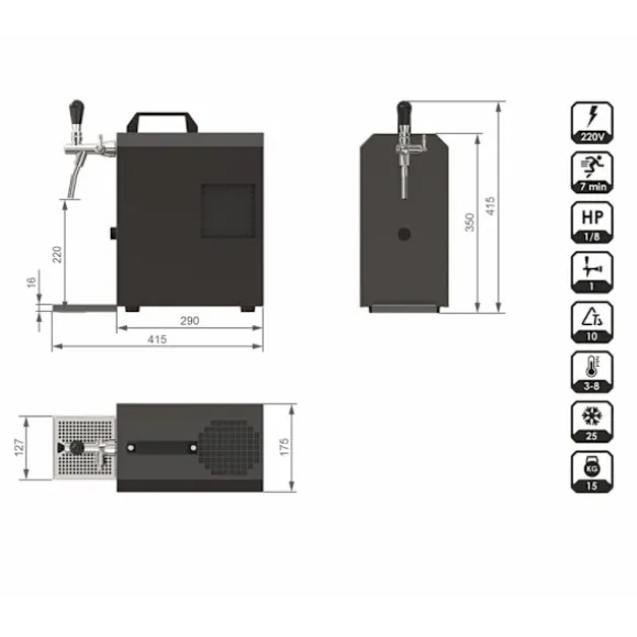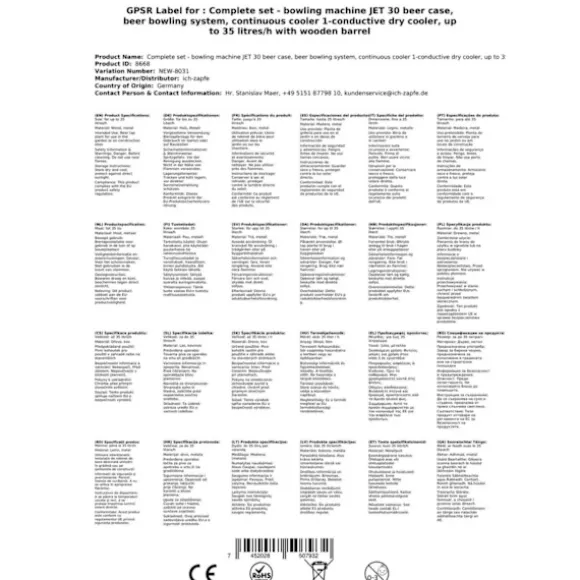 Komplett set under disk – Öltapp JET 30 en linje torr kylare, 35 liter/h -Bierkoffer med trätunna, KEG:NC Adapter