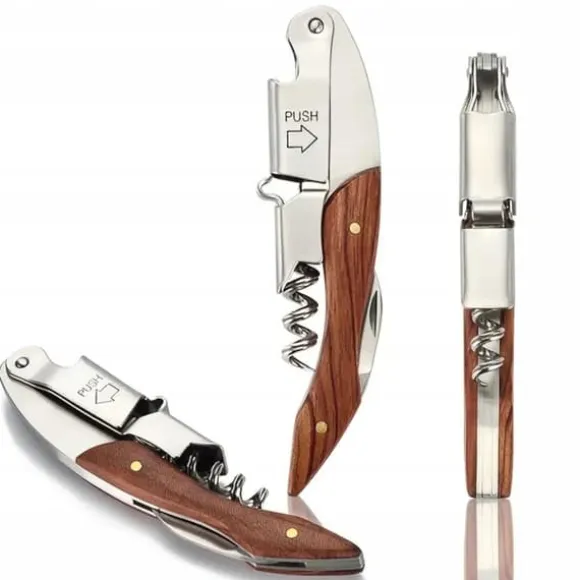 Korkskruvens foder är tillverkat av exotiskt trä, vilket ger den en unik karaktär och elegans. Multifunktionell: