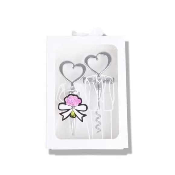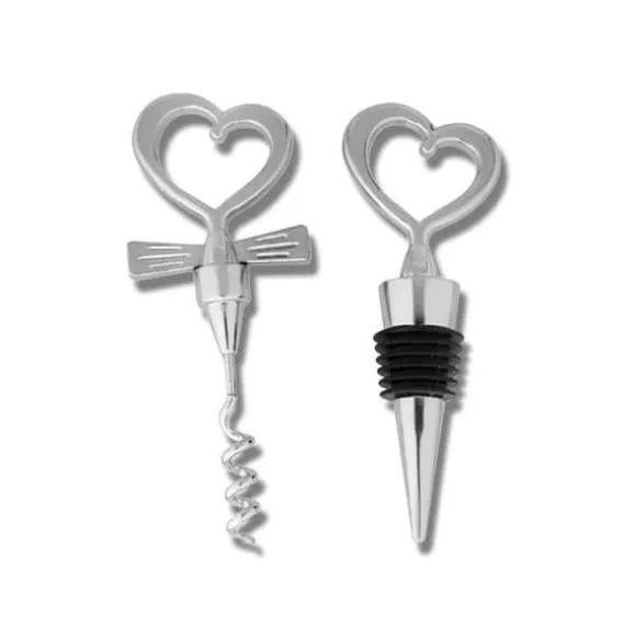 Upptäck dessa två hjärtformade vinkorkar i vitt stål, perfekta för romantiska par. Idealiska för att fira oförglömliga stunder, ger dessa köksredskap en samtida touch till din dekoration.