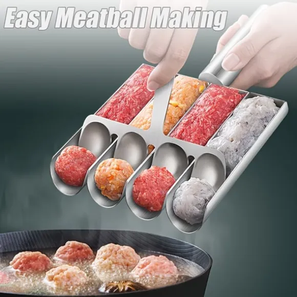 Enkel framställning av köttbullar: Detta set förenklar processen att skapa perfekt formade köttbullar. Den innovativa designen gör att du enkelt kan ösa och forma köttblandningen, vilket säkerställer konsekvent storlek och form för jämn tillagning.