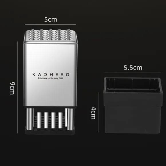 Vår köttmörare är ett måste i alla kök som älskar att laga kötträtter. Den innehåller 20 konvexa spikar på baksidan för snabb och mjuk köttbearbetning, och 36 skarpa köttnålar som sparar på trycket och är starka och robusta. Med automatisk återfjädring, är den inte bara effektiv utan även säker att använda, vilket minskar risken för skador på händerna.