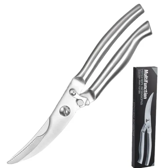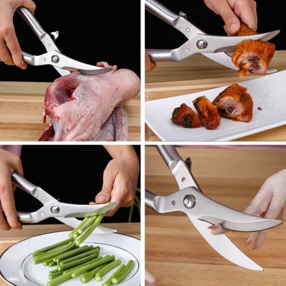 Enkel skärning: Upplev hur enkelt det är att skära genom fjäderfä, kött och ben med våra fjäderbelastade, kraftiga fjäderfäsaxar. De precisionskonstruerade bladen på dessa köksaxar säkerställer rena och enkla snitt varje gång, vilket minskar förberedelsetiden och gör matlagningen till en barnlek. Den ergonomiska designen ger ett bekvämt grepp, vilket möjliggör långvarig användning utan trötthet. Oavsett om du trimmar kyckling, skär en stek eller förbereder fisk är dessa rostfria saxar det perfekta verktyget för jobbet.