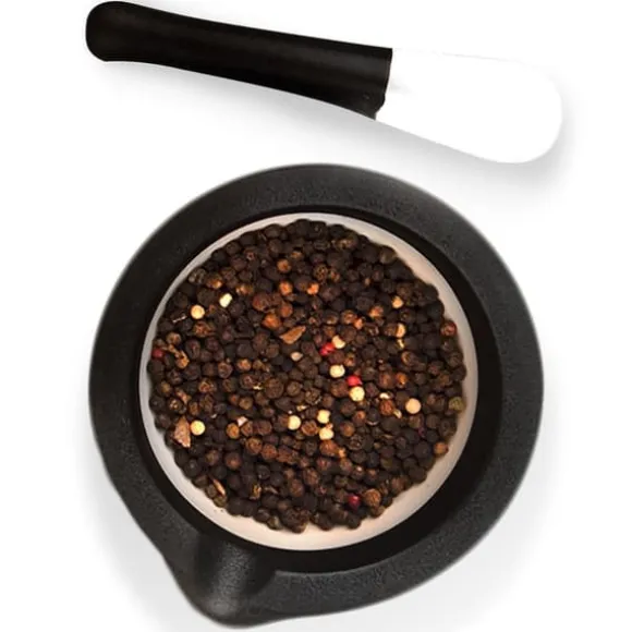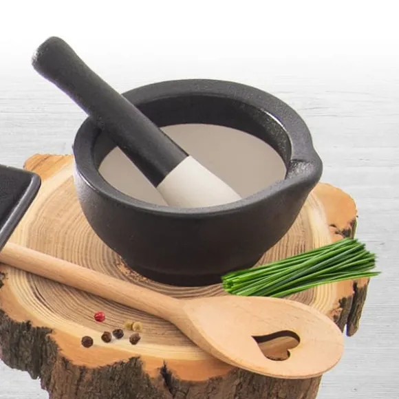 Mortel med stöt tillverkad av porslin. Extremt användbar i köket för att mala kryddor, frön, örter och nötter. Tack vare sin solida konstruktion kommer den att vara ett oumbärligt verktyg i ditt kök. Originalprodukt från det tjeckiska märket Orion. Tillverkad i enlighet med europeiska standarder.