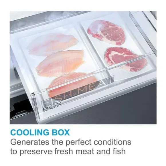 Kylskåpet Midea MDRB380FGE01A kombinerar avancerad teknik med noggrann design för att bevara matens färskhet och ge en bekväm användning. No Frost-systemet eliminerar isbildning, medan Super Cooling-funktionen snabbt kyler ner färska produkter. Med energiklass E får du hög prestanda med låg energiförbrukning. Den tysta driften och kapaciteten på 270 liter gör det till ett pålitligt val för hemmet.