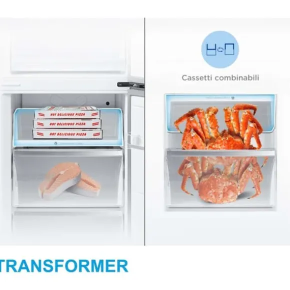 • Hyllor i kylskåpsdelen: 3 flaskställ + 4 hyllor + 2 lådor