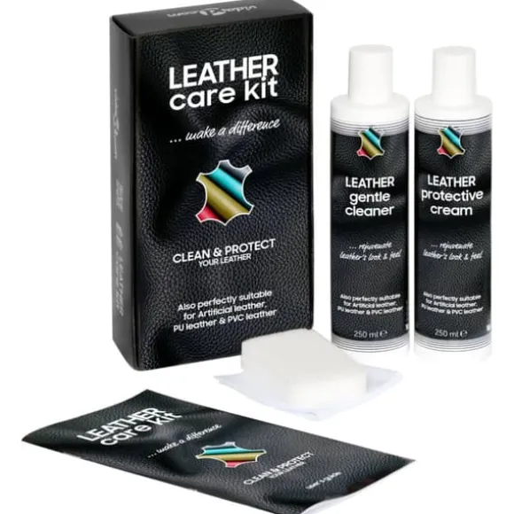 Uppsättningen innehåller säkra produkter för att rengöra, stärka och skydda läder mot fukt, hudfett, svett, smuts och UV-strålning. Regelbundet underhåll håller läder mjukt och förlänger dess livslängd. Dessutom är den även lämplig för konstläder/PU-läder och PVC-läder.