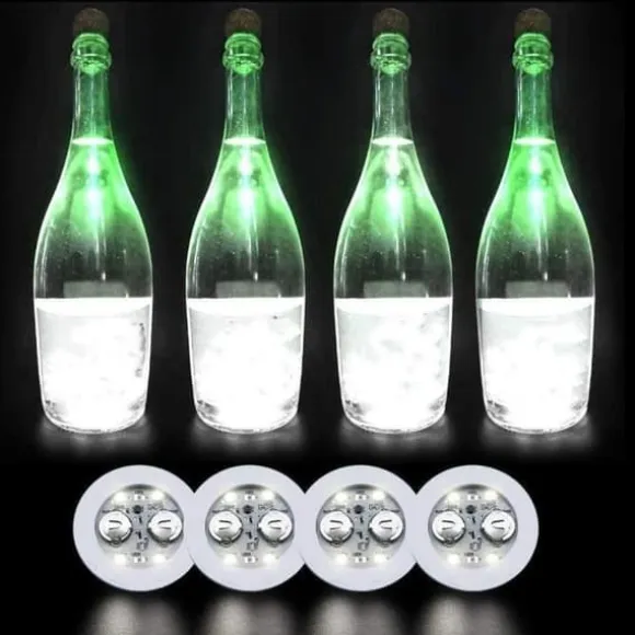 Denna uppsättning med 10 LED-upplysta glasunderlägg i en rund form är idealisk för öl- eller vinflaskor. Tillverkade av laminerat skum, de är stabila och vadderade. Med 3 ljuslägen (snabbt, långsamt, konstant blinkande) ger de en festlig touch till dina evenemang.