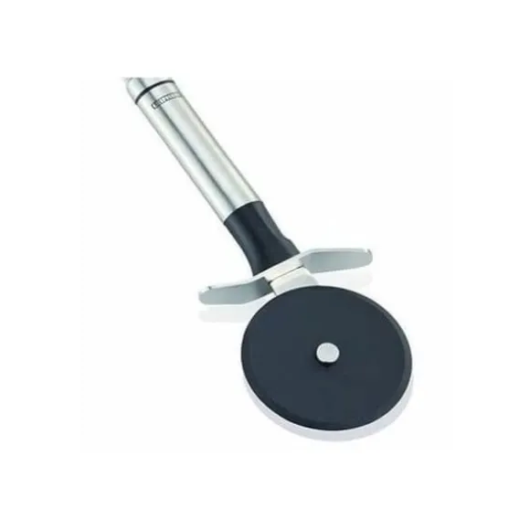 Skär din pizza snyggt och snyggt vid första passet med denna ProLine 03128 nylon pizzaskärare från LEIFHEIT. Dess nylonhjul tillåter skärning direkt på kokplattan utan att repa den. Dess högkvalitativa ovala handtag i rostfritt stål garanterar stor komfort i handen.