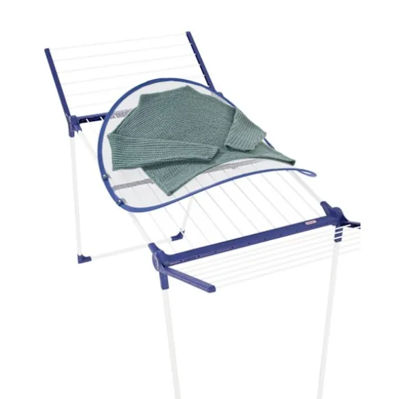 Denna torkningsställning är utvecklad för att skydda känsliga textilier med en nätstruktur som ger ett jämnt stöd under torkningen och minskar risken för märken och deformationer. Den rundade formen underlättar luftcirkulation, vilket gör att plaggen torkar jämnt och behåller sin ursprungliga passform även efter tvätt.