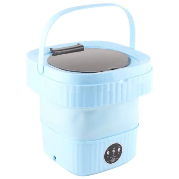 1, liten och bärbar: Tvättmaskinens vikbara design är mycket liten och bärbar, lätt att bära, mycket lämplig för resor, sovsal eller utomhusbruk.