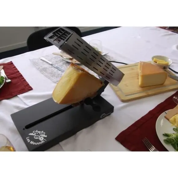 Produktbeskrivning: LITTLE BALANCE Savoyarde quarter-wheel raclettemaskin är idealisk för 4 personer. Med en effekt på 600 W smälter den ost snabbt. Dess justerbara termostat och distinkta Meuuuh-design, samt dess glidande, svängbara och justerbara osthållare i rostfritt stål, garanterar perfekt smältning. Lätt och kompakt, den är utrustad med halkfria fötter för ökad stabilitet.