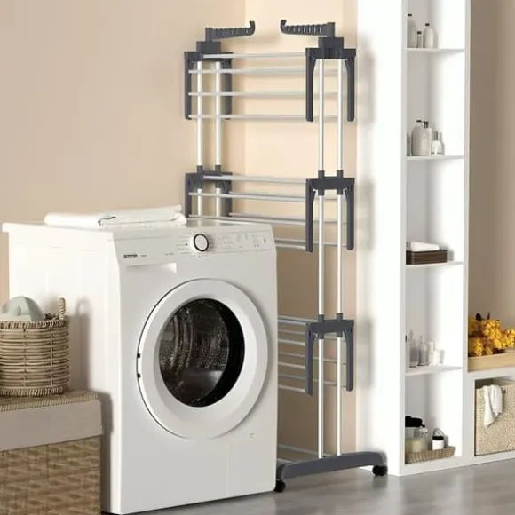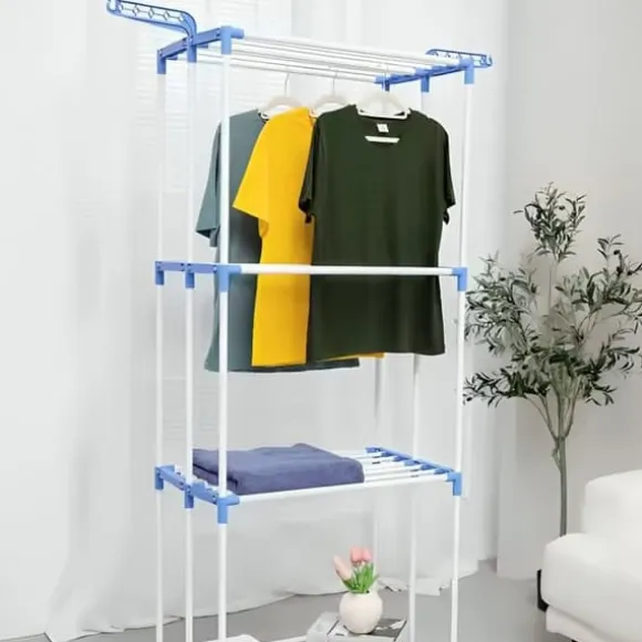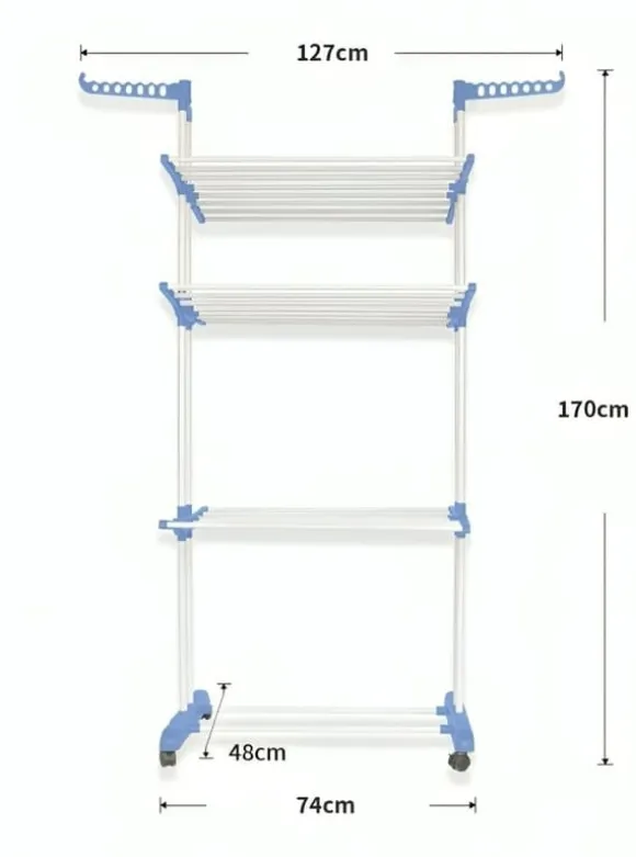 Rymlig Flernivådesign: Erbjuder gott om utrymme för att torka kläder, handdukar och skor med sina generösa mått.