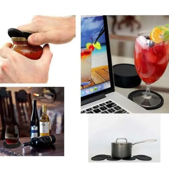 Dessa silikonunderlägg passar alla typer av muggar och glas, oavsett om det är iskallt vatten, varmt vatten, kaffekopp, ölglas eller flaskdryck. De står stadigt på bordet och förhindrar halkning samt skyddar ytan från vattenringar, fettfläckar och värmeskador.