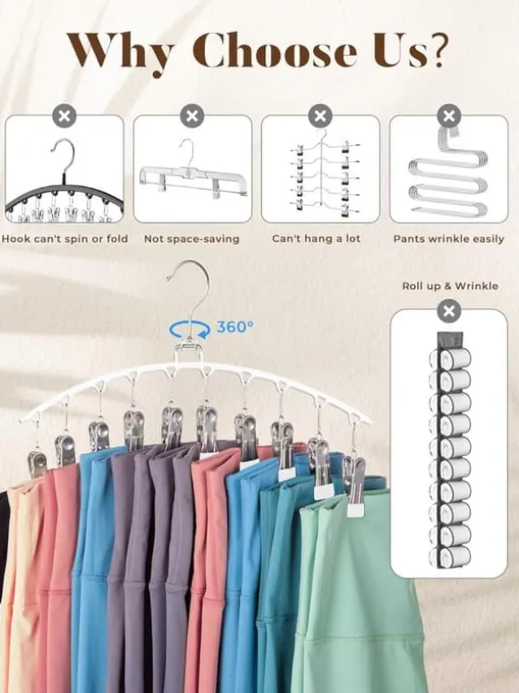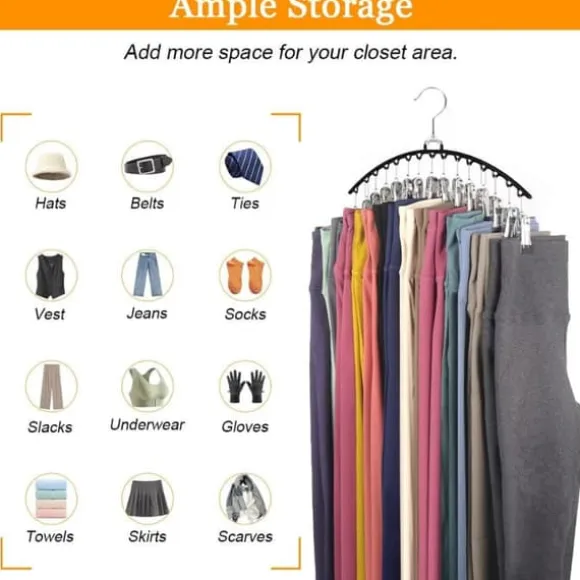 Varje set innehåller 2 byxhängare, varje med 15 klämmor som kan hålla upp till 30 par yogabyxor eller annan klädsel.