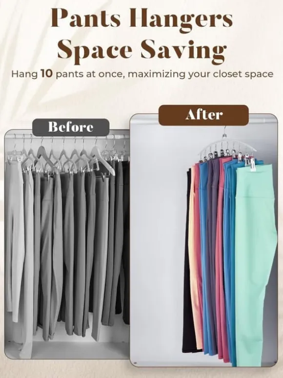 Den här byxhängaren har en platsbesparande design. Den smala konstruktionen gör att hängaren lätt passar in i trånga utrymmen och kan frigöra upp till 75 % mer plats i garderoben – säg hejdå till trängsel!