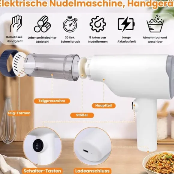 Snabb upplevelse av nudeltillverkning: Denna elektriska nudelpress kan göra 200 g färska nudlar på bara 20 sekunder, perfekt för användare som vill ha en effektiv köksupplevelse, vilket gör hemmagjorda nudlar enkla och snabba.