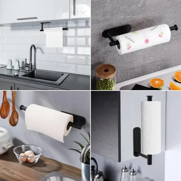 Dubbel monteringsmetod: Det finns två fästmetoder för köksrullehållaren på väggen, limma och skruva. Du kan välja rätt fästmetod beroende på din vägg. Den kan placeras vertikalt eller horisontellt. Innan installationen måste du reservera tillräckligt med utrymme för pappershanddukarna för att förhindra att de sätts in efter installationen.