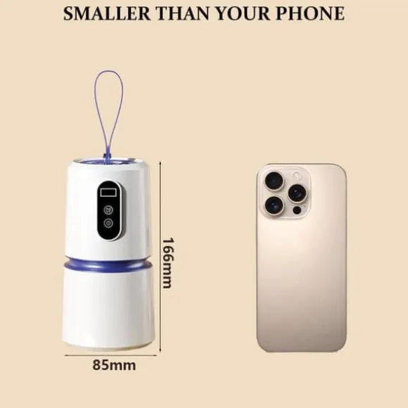 Kompakt design med liten fotyta. Utrustad med bärrem och handtag – lätt att förvara och bära. Perfekt för hem, affärsresor, resor, studentrum, lägenheter och husvagnar. Kräver ingen installation – bara att plugga in och använda.