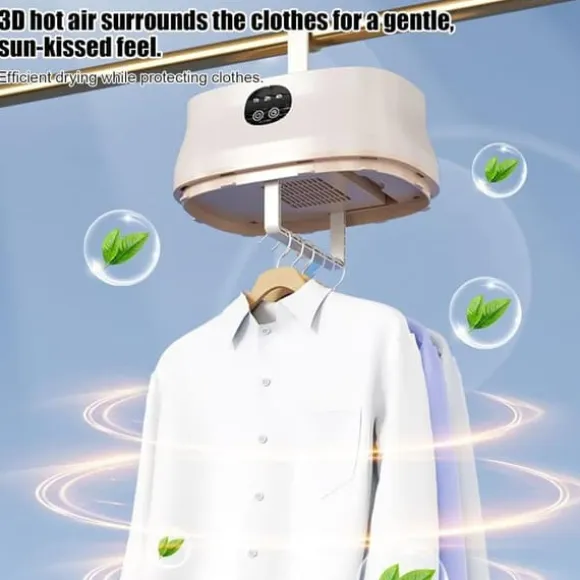 400W motor torkar kläder, handdukar och ömtåliga textilier effektivt. Perfekt för hem, lägenheter, husvagnar eller resor utan att överdriva torkning.
