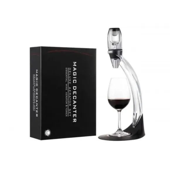 Genom att använda den förbättrade Decanter Wine Magic Deluxe kommer vinets kvalitet snabbt att stiga upp! När vin hälls genom Magic Wine Aerator, luftas vinet vilket ger en fylligare och rikare smak och arom och mjukar upp tanninerna i vinet. Att andas ett vin gör att vinet smakar bättre, men det tar tid. Genom att använda denna magiska vinkaraff påskyndar du denna process, och den