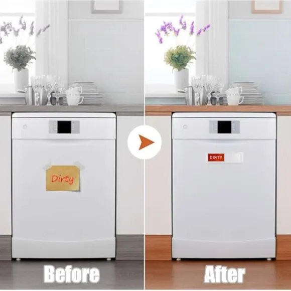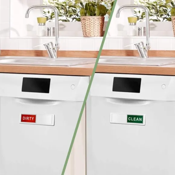Med den magnetiska skylten visar du lätt för övriga familjemedlemmar eller kollegorna på arbetsplatsen om disken är ren eller smutsig. Så kan alla lätt avgöra om disken är redo att plockas ut eller om diskmaskinen behöver startas när den är full.