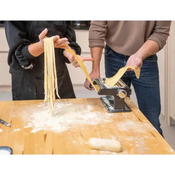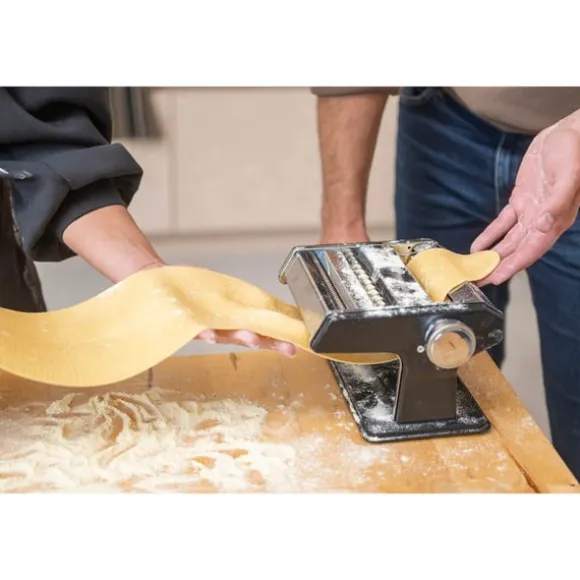 Njut av smaken av färsk hemlagad pasta med den här mångsidiga pastamaskinen. Den är utrustad med en bordsklämma för stabilitet under användning och har nio olika tjockleksnivåer, så att du kan anpassa din pasta till önskad tjocklek. Skärvalsarna är utformade för att göra lasagne, tagliatelle och spaghetti, vilket ger en mängd olika pastaalternativ för dina måltider.