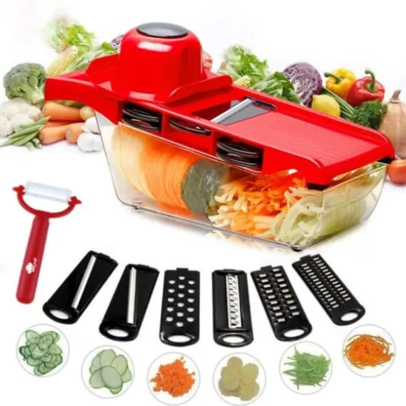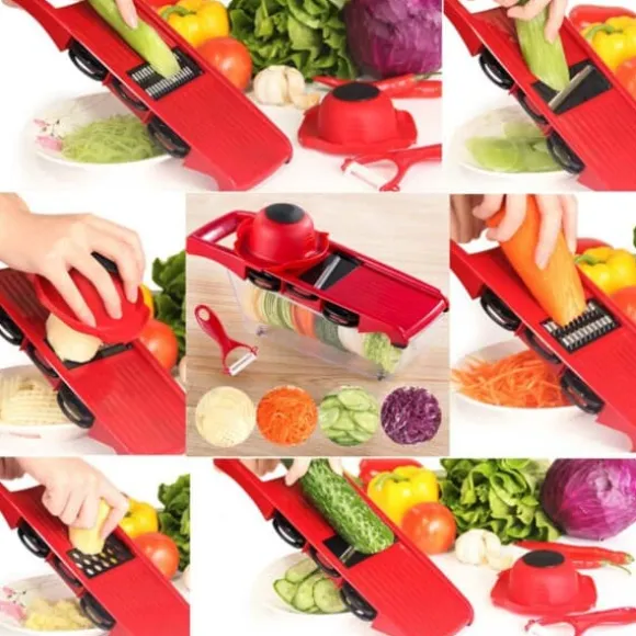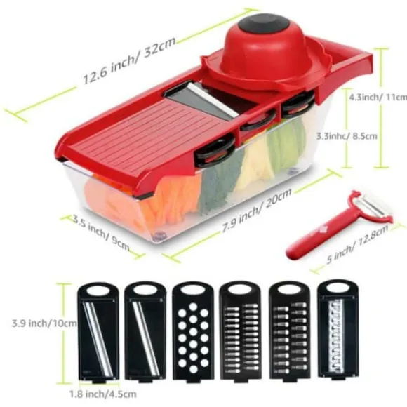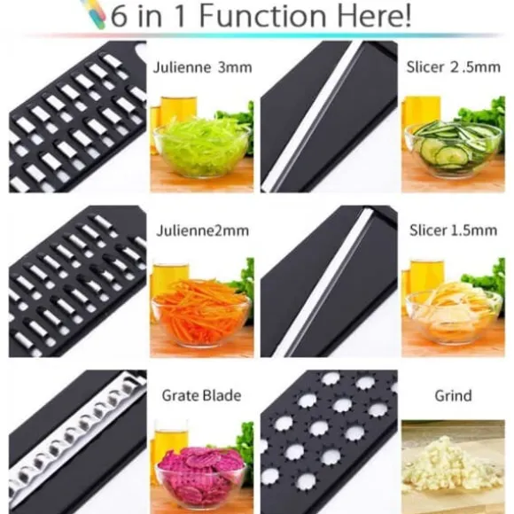 Vår mandolin grönsaksskärare och grönsaksstrimlare är det perfekta verktyget för att göra matlagningen enklare och roligare. Med 6 olika funktioner kan du enkelt skära, strimla och skiva alla dina favoritgrönsaker på ett snabbt och enkelt sätt.