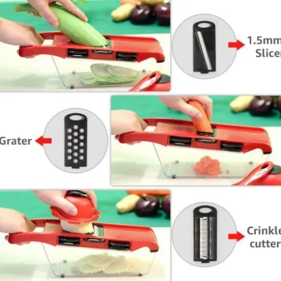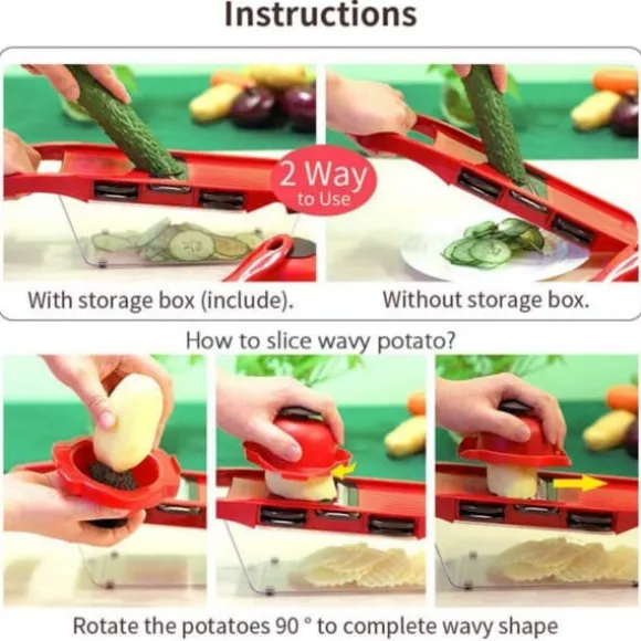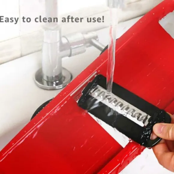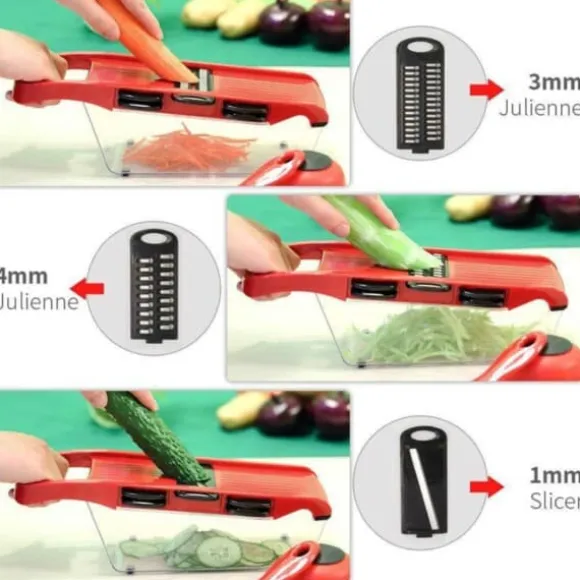Vår mandolin grönsaksskärare och grönsaksstrimlare är mycket enkel att använda. Du behöver bara välja den önskade funktionen och placera grönsaken på plattan. Den är också mycket enkel att rengöra och förvara, vilket gör den till en idealisk köksredskap.