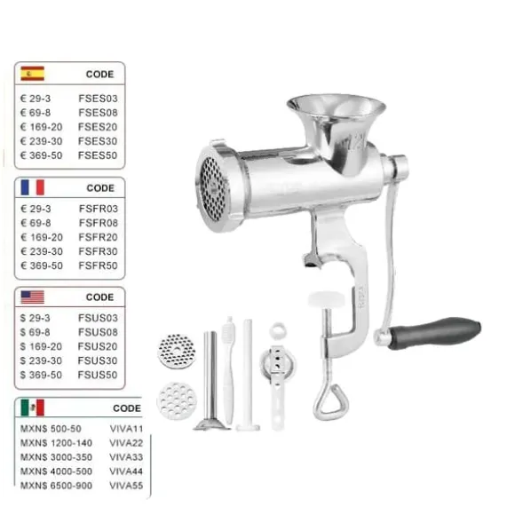 - mångsidiga malningsalternativ: vevor-manuell köttkvarn gör det möjligt för dig att hantera olika malningsuppgifter, från köttbullar till korvar och till och med kakor, vilket gör den till ett oumbärligt verktyg för ditt kök.