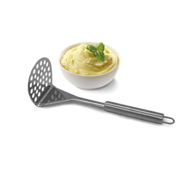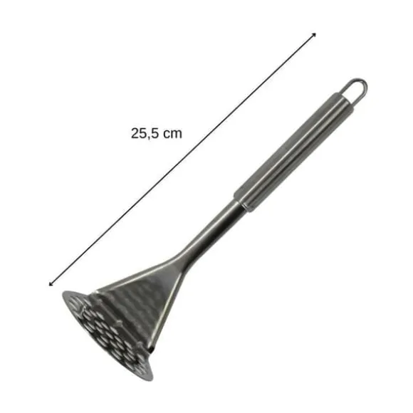 BESKRIVNING: Fackelmann erbjuder denna potatispress från kollektionen Elemental, helt i rostfritt stål, som kommer att hjälpa dig att göra hemlagade puréer med potatis, morötter, sötpotatis med mera. ANVÄNDNINGSTIPS: Vår potatispress tål inte diskmaskin, tvätta den för hand för längre livslängd. SAMMANSÄTTNING: Rostfritt stål. DIMENSIONER: 25,5 x 8,3 x 8 cm. INNEHÅLL: 1 manuell potatispress. Fackelmanns manuella potatispress är helt i rostfritt stål och låter dig krossa dina potatisar och grönsaker för att göra hemlagade puréer. Elektriska mixrar tenderar att göra purén för rinnig, och om du gillar att behålla några bitar av grönsaker i din puré, är denna professionella grönsakspress perfekt för dig! Fackelmann France är ett företag som specialiserar sig på distribution av köks- och bakverktyg samt bakformar och ugnsplåtar. Företaget strävar efter att göra matlagningen enklare för alla med sina smarta redskap. Fackelmann Frances köksredskap erbjuds till alla typer av kockar för enkel och daglig användning. Vispar, spatlar, slevar, skalare, skärbrädor och mycket mer finns tillgängliga för att förbereda läckra och alltmer originella recept.
