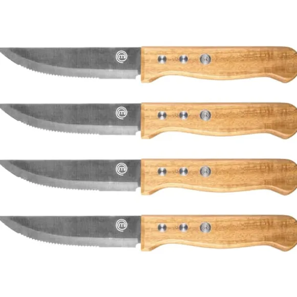 Masterchef Essential stekknivar 4-pack är ett stilrent och funktionellt tillskott till middagsbordet, perfekt för att skära kött, fågel eller fisk med precision och elegans. De 12,5 cm långa bladen i rostfritt stål är handslipade för att ge en rakbladsvass egg som glider genom maten utan att slita eller riva.