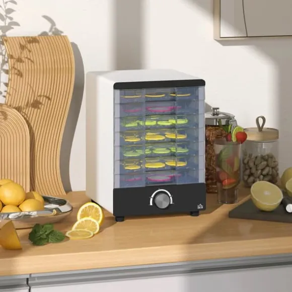Gör hälsosamma snacks hemma med en kompakt mattork som cirkulerar het luft, har exakt temperaturkontroll och en transparent design så att du kan övervaka torkningen när som helst.