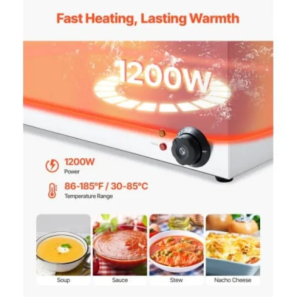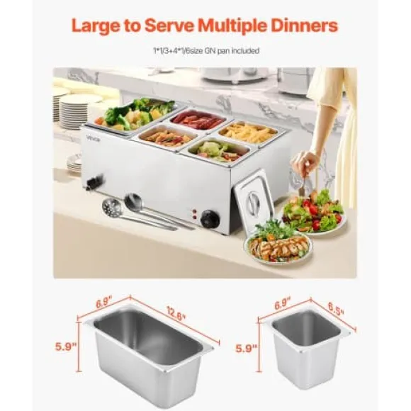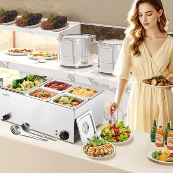 Denna kommersiella matvarmhållare är utformad för professionell catering, bufféer, fester och restauranger, och erbjuder effektiv uppvärmning samt pålitlig temperaturkontroll för att hålla flera rätter varma och serveringsklara. Den robusta konstruktionen i rostfritt stål säkerställer hållbarhet och enkel rengöring, medan säkerhetsfunktioner som torrkokningsskydd ger extra trygghet vid användning. Enheten inkluderar fem separata behållare, vilket gör den idealisk för att servera olika maträtter samtidigt.