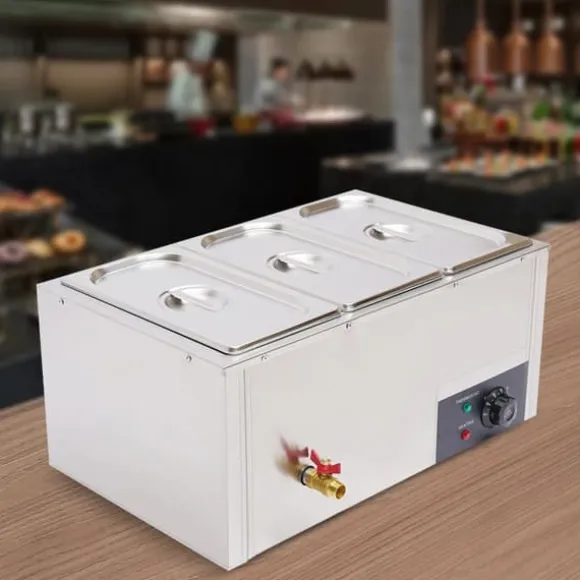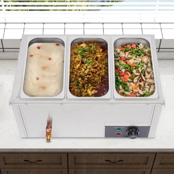Elektrisk matvärmare i rostfritt stål – SilverEn pålitlig buffévärmare som håller rätter varma och serveringsklara. Tre separata 7‑litersbehållare, exakt temperaturkontroll och enkel rengöring gör den perfekt för bufféer, evenemang, storkök och catering.