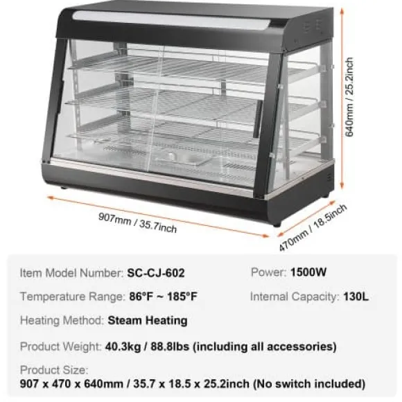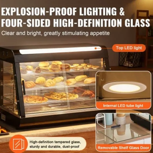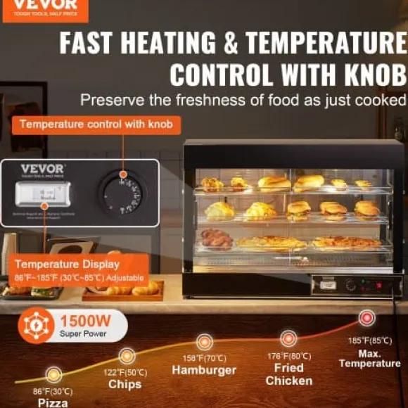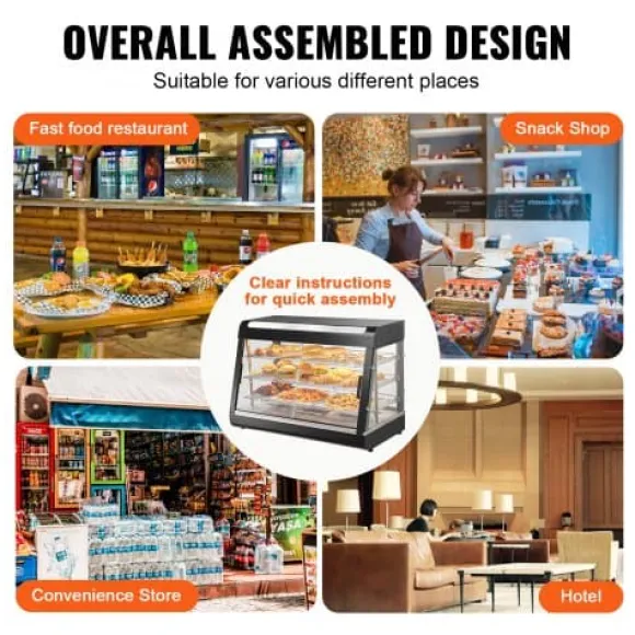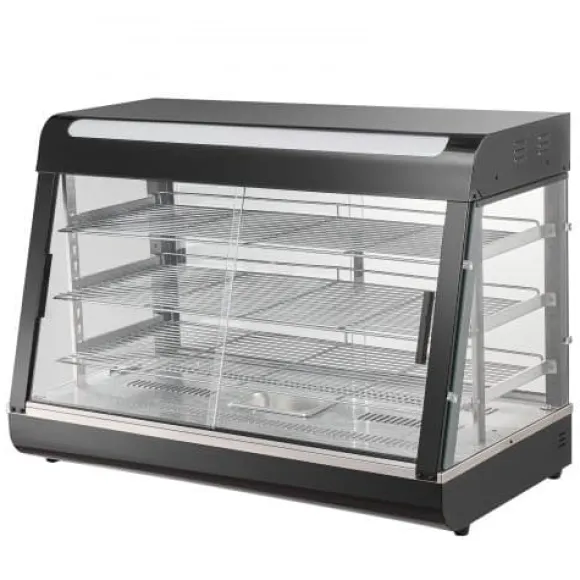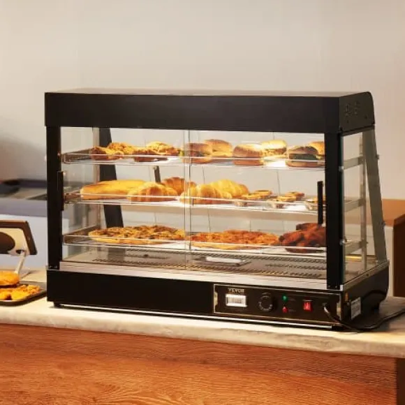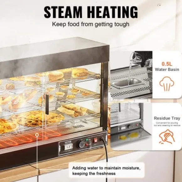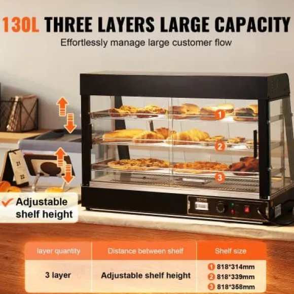 Detta 3-vånings kommersiella matvarmhållardisplay är utformad för att hålla olika typer av mat vid optimal serveringstemperatur, vilket gör den idealisk för bagerier, caféer och snabbmatsrestauranger. Med justerbara hyllor, en temperaturregleringsratt med realtidsvisning och ånguppvärmning för perfekt luftfuktighet, säkerställer den att din mat förblir färsk, saftig och visuellt tilltalande. Den robusta konstruktionen i rostfritt stål och det klara härdade glaset ger hållbarhet och utmärkt produktvisning.