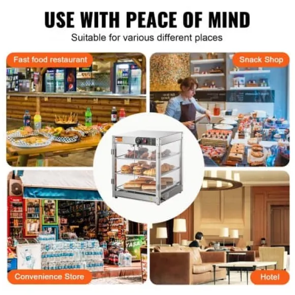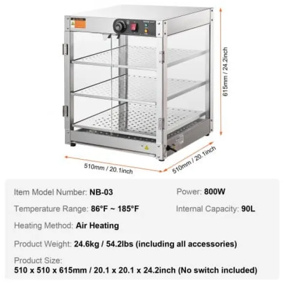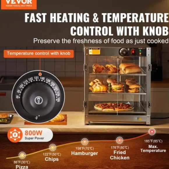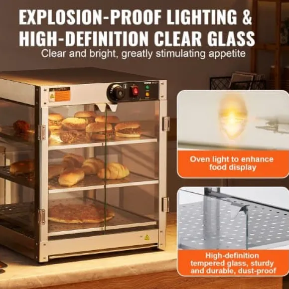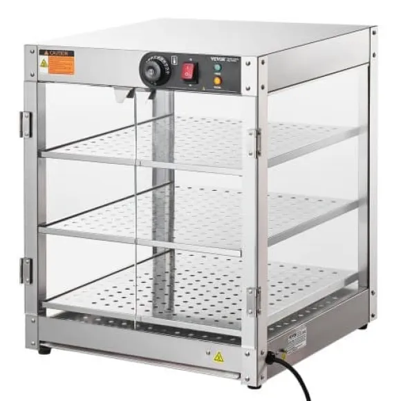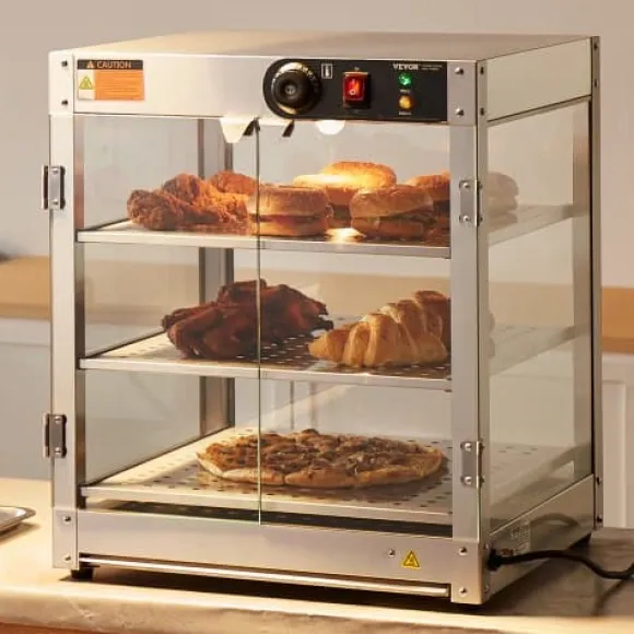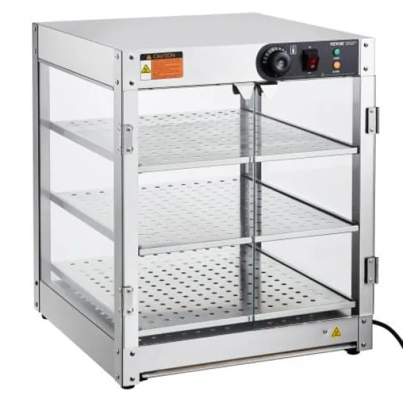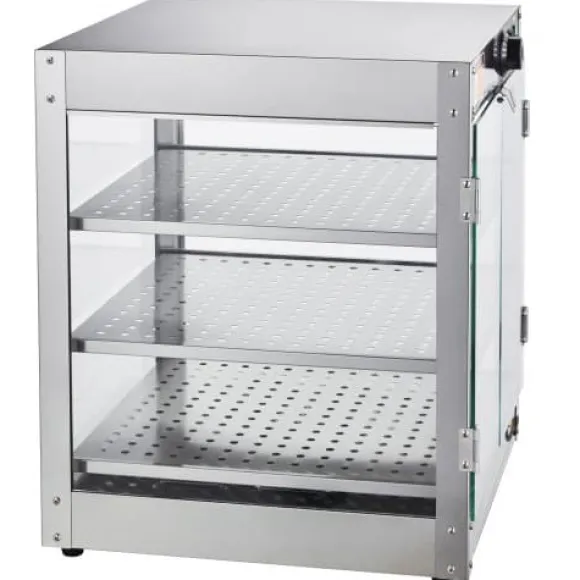 Detta 3-vånings kommersiella matvärmeskåp är utformat för att hålla olika typer av mat varm och visuellt tilltalande, vilket gör det perfekt för bagerier, kaféer och snabbmatsrestauranger. Den rymliga interiören, precisa temperaturkontrollen och den hållbara konstruktionen i rostfritt stål säkerställer att din mat förblir fräsch och serveringsklar. Det klara härdade glaset och den inbyggda LED-belysningen förbättrar presentationen av dina erbjudanden samtidigt som rengöring och underhåll blir enkelt.
