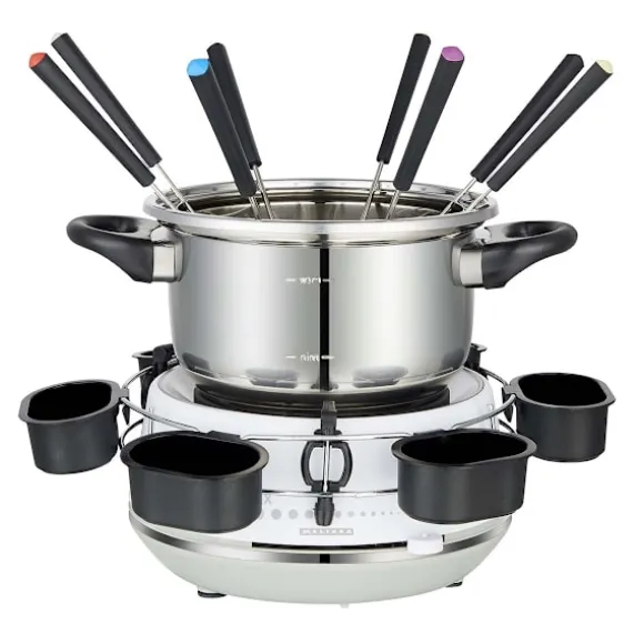 Du kan tillaga kött, räkor och grönsaker i 2-literskannan eller använda fonduegrytan till dessert med ost och choklad.