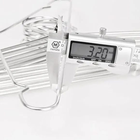 Tillverkade av slitstarkt rostfritt stål skapar dessa galgar ett harmoniskt flöde i din garderob. Galgens förpackningsstorlek: 40 st/förpackning; 16,5 tum, 3 mm tjocklek