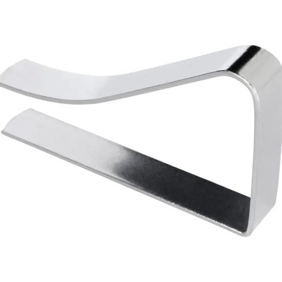 Bordsduksklämma i metall. Håller duken perfekt fast vid bordsskivan och förhindrar att den glider. Användbar i alla hem, trädgårdar, terrasser eller balkonger. Oumbärlig för blåsigt väder under utomhusfester eller picknickar. Det praktiska, slitstarka klämman säkerställer en stabil bordsduk som förhindrar att disk som placeras på den glider eller faller. Tillverkad enligt europeiska standarder.