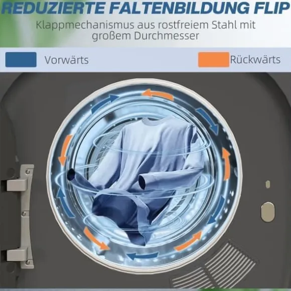 Rostfri ståltrumma med stor diameter och fram- och bakåtdrift minskar skrynklor och underlättar strykning. -