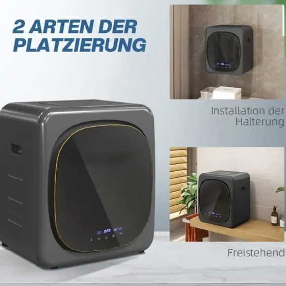 Mini Torktumlare – 2.5kg kapacitet, 6 program, LED-touchskärm, 800 W, upp till 60℃, fristående eller väggmonterbar, överhettningsskydd, grå