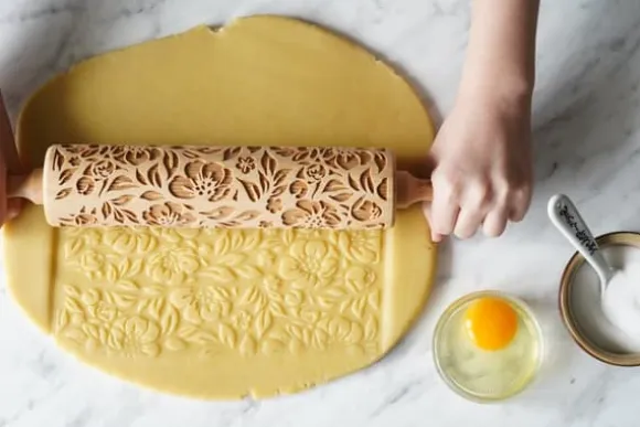 Upplev blommornas magi i vintagestil. Den graverade kaveln Wild Roses, tillverkad av bokträ, låter dig enkelt ge dina bakverk en romantisk, blommig touch. Den djupa gravyren får kakor, pepparkakor eller mördeg att se ut som små konstverk. Lägg till i varukorgen och skapa en dessert som kommer att vinna din familjs hjärtan! FÖRDELAR FÖR DIG • Hög kvalitet till ett överkomligt pris – en solid och hållbar kavel som håller i åratal. • Perfekt som present – vacker och praktisk för familj och nära och kära. • Lätt att använda – en rulle kavel skapar ett tydligt mönster. • Garanterade resultat – ett upprepningsbart och läsbart blommotiv. • Snabb leverans – dina bakverk kommer snart att få charm. • Unik design – romantiska rosor i vintagestil i ditt kök. • Säker för din hälsa – tillverkad av naturligt bokträ. MATERIAL OCH SPECIFIKATIONER • Material: bokträ • Färg: naturbok • Längd med handtag: 43 cm • Arbetsytans längd: 25 cm • Diameter: 6 cm • Vikt: 0,55 kg • Tillverkningsteknik: djup lasergravering, handgjord • Ytbehandling: tvättad, ren ANVÄNDNING OCH SLUTEFFEKT Med kaveln Wild Roses kan du dekorera kakor, pepparkakor, mördeg, sockerpasta, lera och saltdeg. Efter bara en kavel får du ett tydligt, konvext blommönster. URSPRUNG OCH EKOLOGI Produkten är tillverkad i Polen av bokträ som kommer från lagligt förvaltade skogar. Trä är ett naturligt, biologiskt nedbrytbart material, miljövänligt och säkert för familjen. FAQ F1: Vad ska man köpa för att enkelt dekorera kakor med ett blommönster? A1: Graverad kavel Vilda rosor – en kavel och effekten är klar. F2: Vilken dekorativ kavel passar ett vintagekök? A2: Kavel Vilda rosor – den blommiga Motivet passar perfekt till den romantiska atmosfären. F3: Vad ska jag välja om jag snabbt vill dekorera pepparkakor utan några konstnärliga färdigheter? A3: Kavel med vilda rosor – en djup gravyr skapar en effekt på några sekunder. F4: Vilken present ska jag välja till familjen inför högtiderna? A4: Kavel med vilda rosor – att baka tillsammans får en unik karaktär. F5: Vad ska jag köpa till en mamma som älskar blommor och bakning? A5: Graverad kavel med vilda rosor – praktisk, vacker och romantisk. F6: Vilken present kommer att tilltala en älskare av rustik inredning? A6: Kavel med vilda rosor – vintageblommor kommer att betona kökets naturliga karaktär. F7: Vad gör en praktisk present till köket? A7: Kavel med vilda rosor – funktionell och dekorativ på samma gång. F8: Vilket litet föremål fungerar också som dekoration på en kökshylla? A8: Kavel med vilda rosor – Ett vackert dekorativt element och kökshjälp. F9: Vilken present är både praktisk och originell? A9: Kavel med vilda rosor – en unik kombination av vintagestil och funktionalitet. CERTIFIKAT OCH SÄKERHETSVARNINGAR Lämplig för kontakt med livsmedel i enlighet med med förordning (EG) nr 1935/2004 Lämplig för kontakt med livsmedel i enlighet med US FDA 21 CFR 178.3800 Uppfyller god tillverknings- och hygienpraxis i enlighet med förordning (EG) nr 2023/2006 För underhållsändamål, olja regelbundet in med en lätt mineralolja lämplig för kontakt med livsmedel. Kemtvätta med en mycket mjuk borste. Om vatten behövs, tvätta snabbt och försiktigt och torka sedan noggrant. Använd inte vassa, hårda verktyg för att ta bort deg, eftersom det kan skada träet och mönstret. Kontrollera om det är skadat före användning; använd inte om det är skadat. Diska inte i diskmaskin eller blötlägg i vatten under längre perioder. Förvaras torrt, svalt och torrt. Vid rumstemperatur, strö degen rikligt med mjöl före användning för att förhindra att den fastnar på ytan.