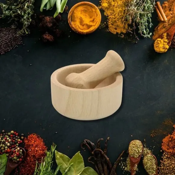 BESKRIVNING: Fackelmann erbjuder en mortel med stöt i bokträ. Denna mortel är perfekt för att mala och reducera dina livsmedel till pulver. LILLA +: I denna mortel kan du krossa dina kryddor som hela pepparkorn, så att du kan välja storlek på kornen som du önskar! Du kan också enkelt extrahera oljor från dina växter. KOMPONENSDATA: Bokträ. DIMENSIONER: mortel: 4,5 x 10 cm; väggtjocklek: 8 mm; stöt: 8 x 2,5/3,5 cm. INNEHÅLL: 1 mortel i trä + 1 stöt i trä. Fackelmanns köksmortel är tillverkad av trä. Med stöten kan du krossa dina örter eller kryddor för att extrahera all arom. Örter och kryddor gör det möjligt för dig att krydda och ge smak åt dina rätter, vilket även personaliserar receptet eftersom var och en kan välja de kryddor och örter de föredrar. Fackelmann Frankrike är ett företag specialiserat på distribution av köks- och bakredskap samt bakformar och plåtar. Företaget strävar efter att förenkla matlagningen för alla genom sina smarta redskap. Fackelmanns köksredskap erbjuds till alla typer av kockar för enkel och daglig användning. Vispar, spatlar, slevar, potatisskalare, skärbrädor och mycket mer finns tillgängliga för att förbereda läckra och alltid mer originella recept.