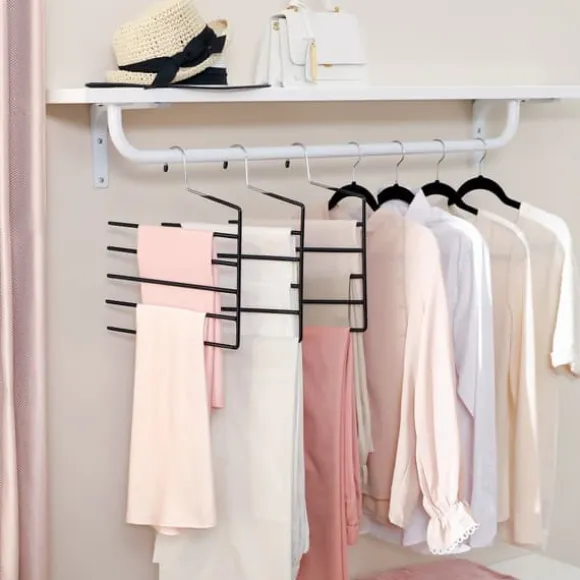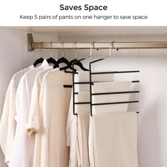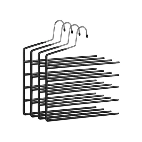Dessa platsbesparande byxgalgar är utformade för att effektivt organisera din garderob genom att hålla flera par byxor på en enda galge. Deras halkfria beläggning säkerställer att dina plagg hålls säkert på plats, vilket gör dem idealiska för byxor, slipsar, scarfar och andra accessoarer.