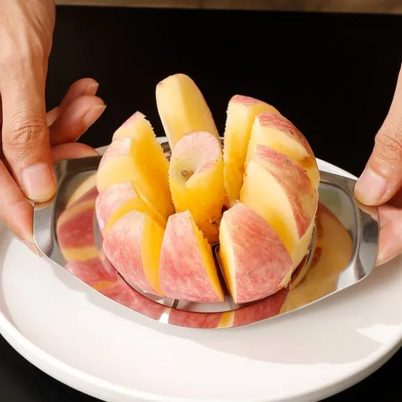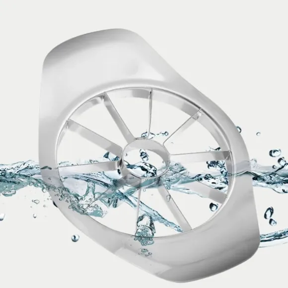 Lätt att rengöra: Tillverkad av förstklassigt rostfritt stål, denna fruktskärare är resistent mot rost och korrosion. Den tål även diskmaskin, vilket gör rengöringen snabb och bekväm.