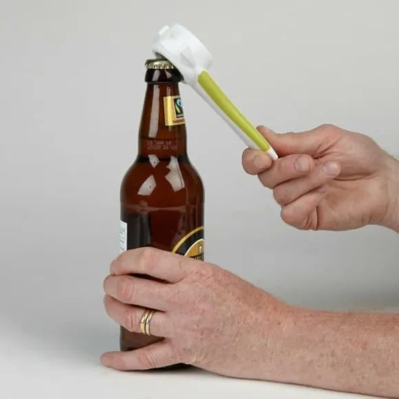 Gör vardagen lite enklare med denna multifunktionella öppnare. Öppnaren hjälper dig öppna en rad olika sorters förpackningar som glasflaskor med kapsyl, glasburkar med lock, plastflaskor med kork och plåtburkar. Det ergonomiska handtaget ger dig ett bekvämt grepp och förhindrar smärta vid ansträngning. Ett användbart redskap att ha hemma som kan spara tid och energi när du behöver det, perfekt för barn, äldre och personer med besvär och smärta.