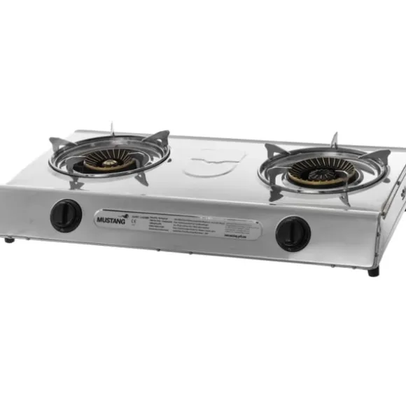 Ett gasolkök med två brännare och imponerande effekter på 3,4 kW (brännare Ø10 cm) och 4,3 kW (brännare Ø12 cm)